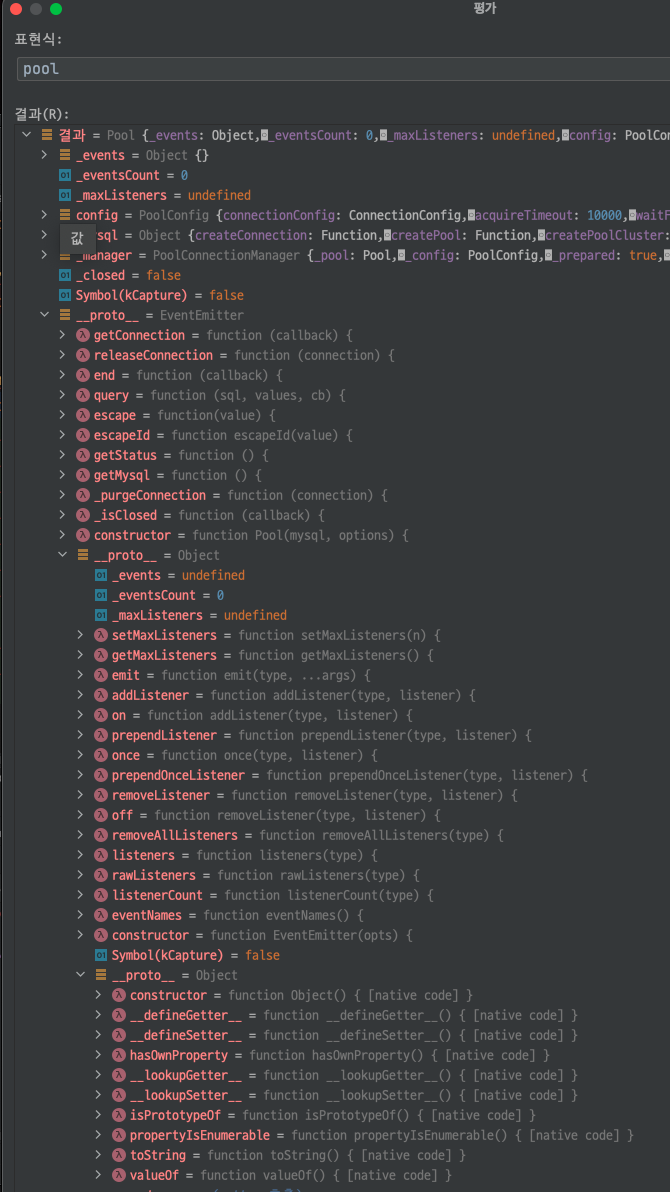 Pool 에서 따로 정의 하지 않았는데 __proto__가 포함되는것을 알 수 있다.