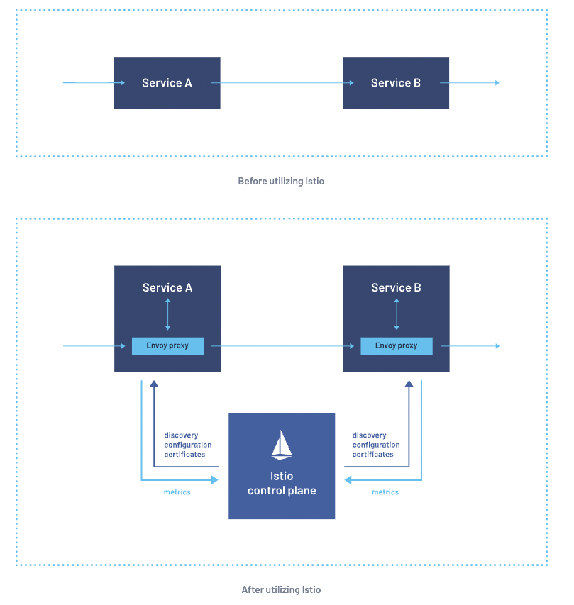 istio는 비즈니스 로직에 일정 Mesh 에 대한 코드가 필요없다