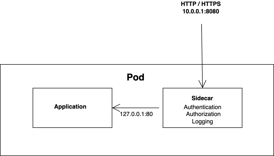 Envoy는 동일한 Kubernetes pod의 Application 서비스에 사이드카로 배치된다.