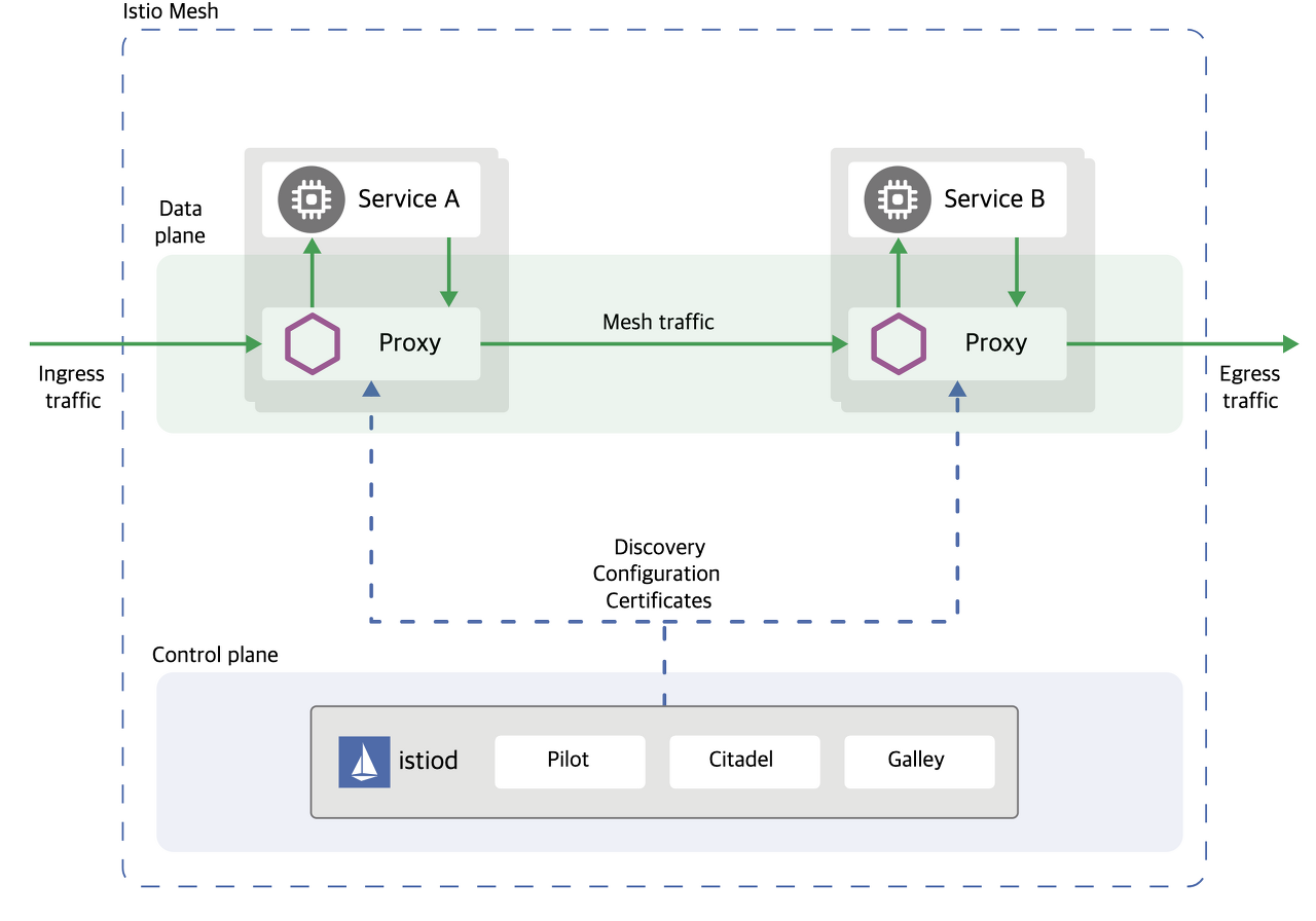 서비스 검색(Discovery), TLS 인증서 발급, 메트릭 집계 등을 포함하고 필요한 컴포넌트들을 제공한다.