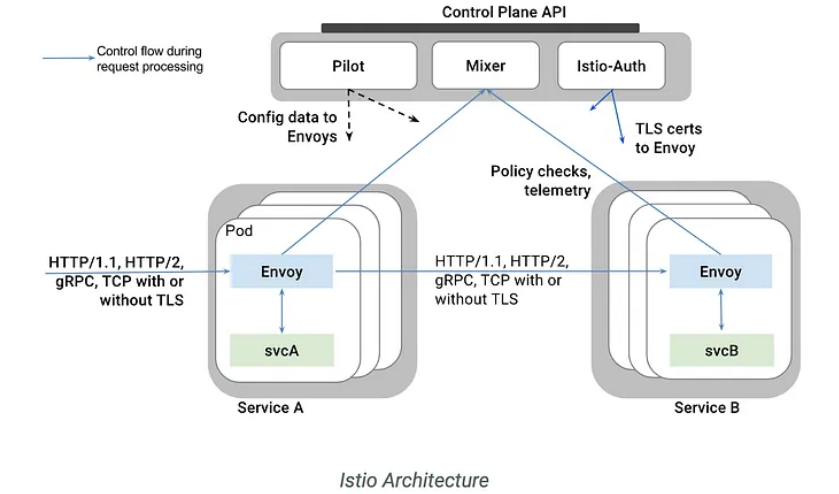 서비스 검색(Discovery), TLS 인증서 발급, 메트릭 집계 등을 포함하고 필요한 컴포넌트들을 제공한다.