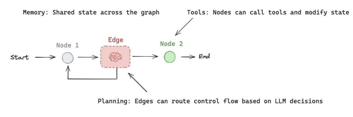 ✔ Edge는 LLM이 내리는 결정(LLM decisions)에 따라 경로를 변경할 수 있음