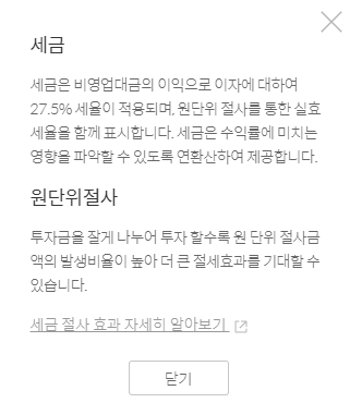 원래 27.5%의 세율이 적용되는데 원단위절사로 인해서 최소 투자인 5천원으로 절사금 액 발생 비율이 높아