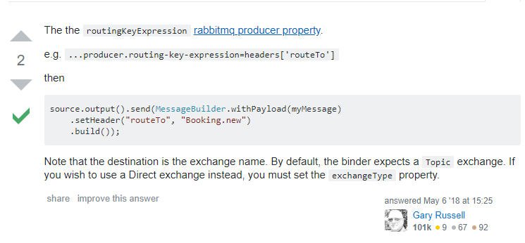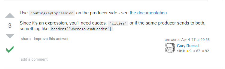 stackoverflow에 Howto set routing key for producer라고 질문한 사람이 있다.