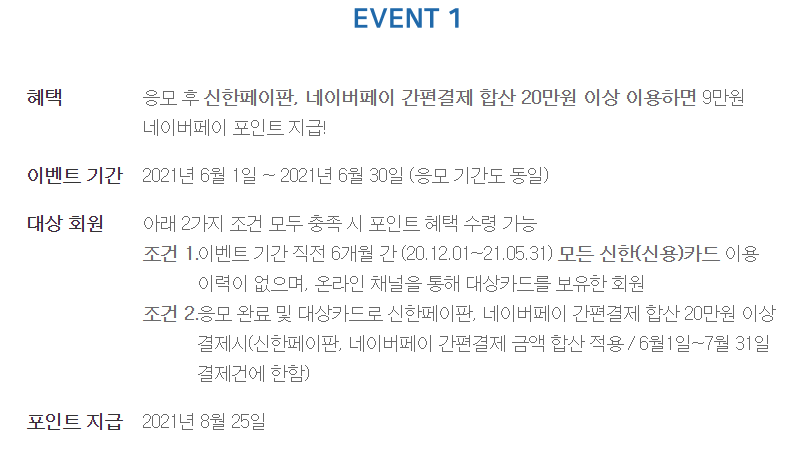 이 카드도 되는지는 잘 모르겠다. 네이버에서 아래 이벤트를 활용하면 9만원 네이버 포인트로 지급하는데