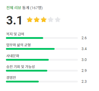 평점이 첫회사보다는 높다! 사람들이 첫회사가 중요하다고 말하기는 하는데 실제로 체감을 많이 하지 못했는데