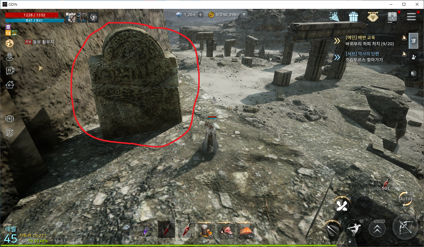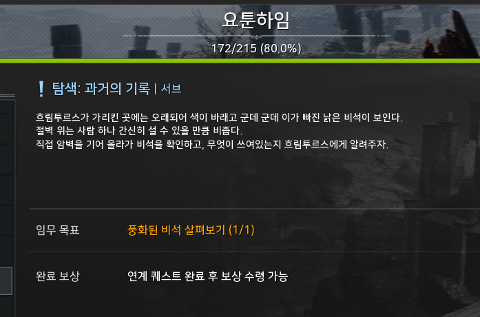 맵에서 보이는 위치로 가서 벽을 하나 올라가야 비석이 보인다